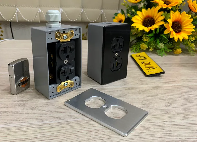 Các ổ cắm điện và mặt nhôm phay chỉ mang tính minh họa, không đi theo hộp nhôm.