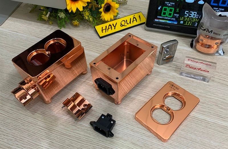 Không phải tự nhiên mà các hãng lựa chọn các loại thiết bị điện cao cấp với chất liệu đồng càng nặng, càng chất lượng và thiết kế để tạo ra một sản phẩm đắt tiền cứa túi của chúng ta. Cũng như các sếp, không phải ngẫu nhiên mà đi tìm kiếm các tấm đồng dày ngoài chợ mang về chế tác hộp chống nhiễu, thoát nhiễu.