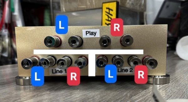 * 2 âm ly chơi với 1 cặp loa: Amply 1 cắm vào Line 1, Amply 2 cắm vào Line 2 - Cặp loa cắm vào ngõ PLAY